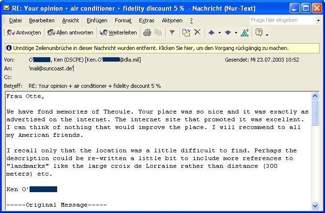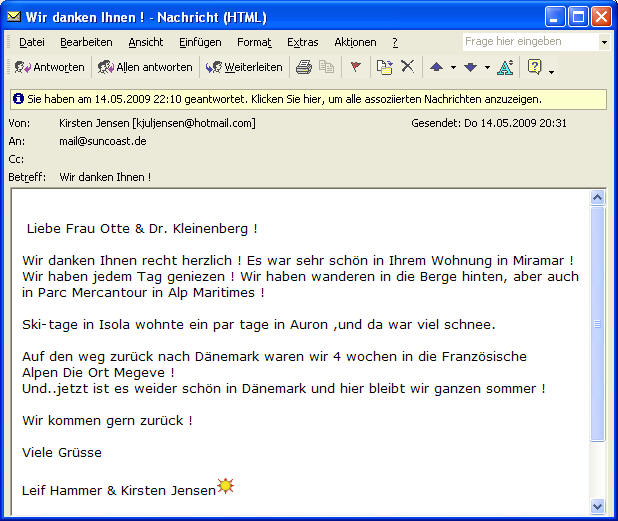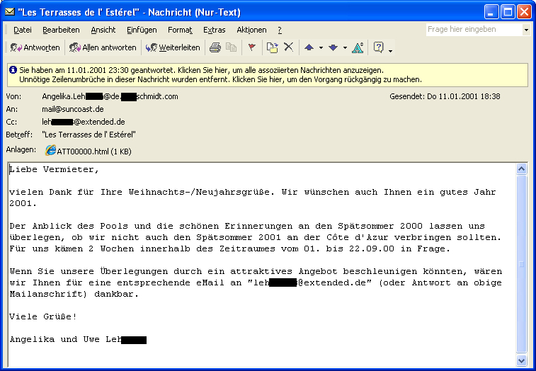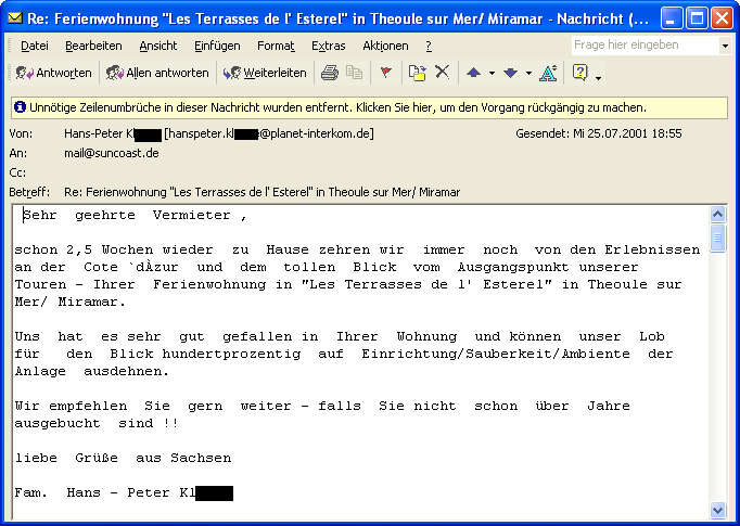 Betreff: Re: AW: Ferienwohnung "Les Terrasses de l' Estérel" in Théoule sur